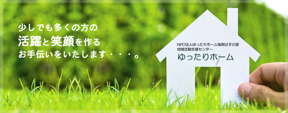 ページ先頭へ戻るCopyright © 特定非営利活動法人ゆったりホーム 海部はすの里. All rights reserved.
