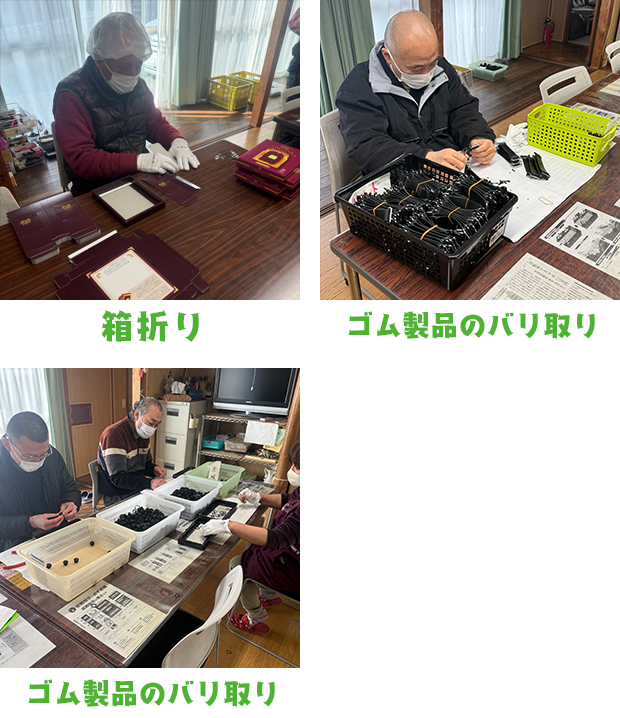 作業とフリータイム・レクレーションなどを組み合わせたプログラムを提供しています。毎日通っている方のなかには、1ヶ月12,000円~20,000円程度の工賃(諸手当含む)を稼がれている方もいます。