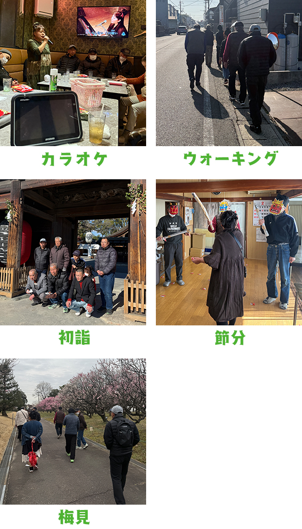 自由参加でカラオケやウォーキングなど、利用者の方々のリクエストを中心にプログラムを組んでいます。